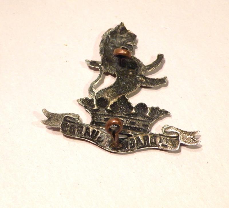 The all white metal badge of the 7th (Princess Royal’s) Dragoon Guards. This badge was issued from around 1898 until 1906 when it was changed to all brass.