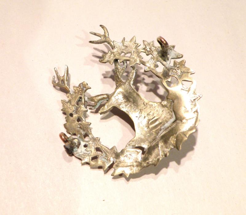 A cast solid white metal 3-D officers glengarry badge, good quality with nice detail and just light wear to the high points. It measures 2.5 inches in diameter.