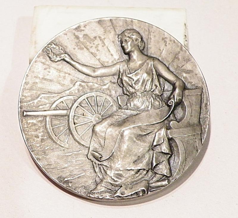 A very heavy solid silver medallion instituted by John Pinches London and issued after the death of Colonel Neville Lloyd Walford Royal Artillery 1844 – 1901. It was issued to officers of the Royal Artillery in limited numbers triennially from 1905 for most valuable work in connection with foreign service. This one is named to Lieutenant C.O.C. Hunt RFA 1908.