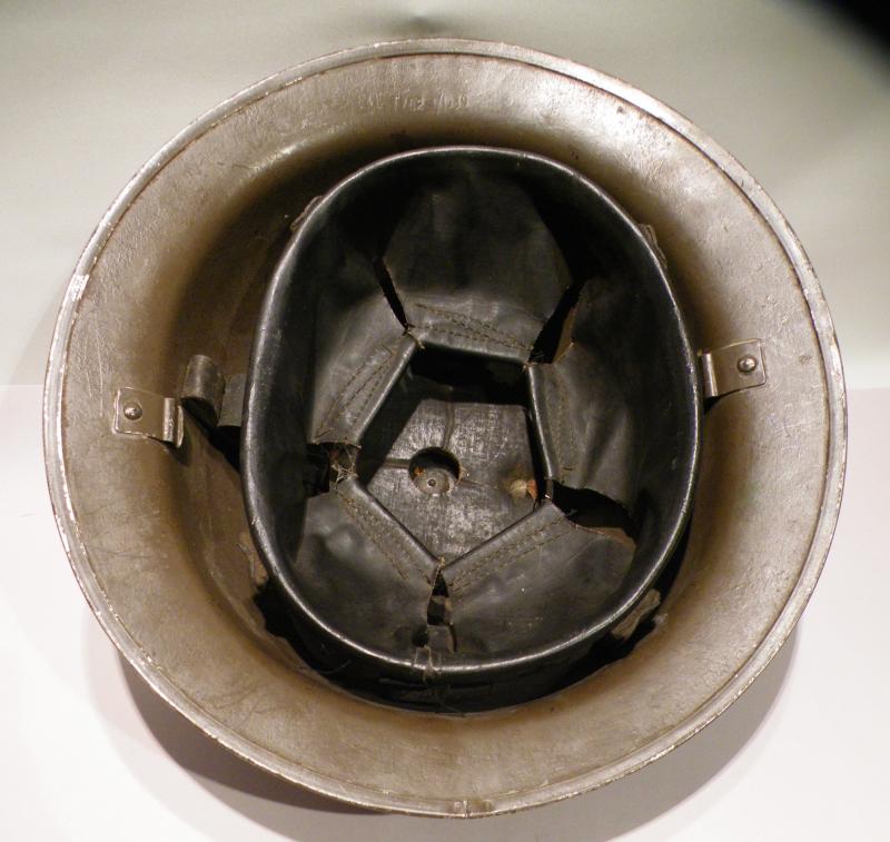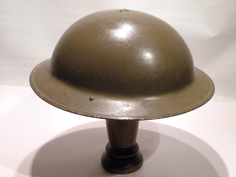 A WW2 Brodie helmet in superb condition. Drab green paint with what remains of the original decal, which could be the 45th Infantry division. It still retains its original liner, but no chin strap and on the whole, it looks hardly used and just shows age wear. it is stamped to the front with the date of 1939 and the maker F & L for Fisher & Ludlow Ltd of Birmingham