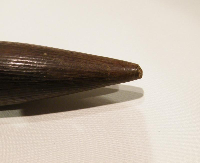 A 19th century traditional Australian Aboriginal hardwood Nulla Nulla club or hunting stick. Made from a dense hard wood with a diamond shaped head, long shaft, the base carved with a criss-cross pattern for grip. In very good used condition with a chip off the very top. It measures 26 inches long.