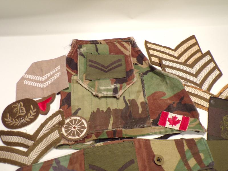 Various current cloth insignia including a Corporal’s camouflage Brassard. All in used condition. Lot 31