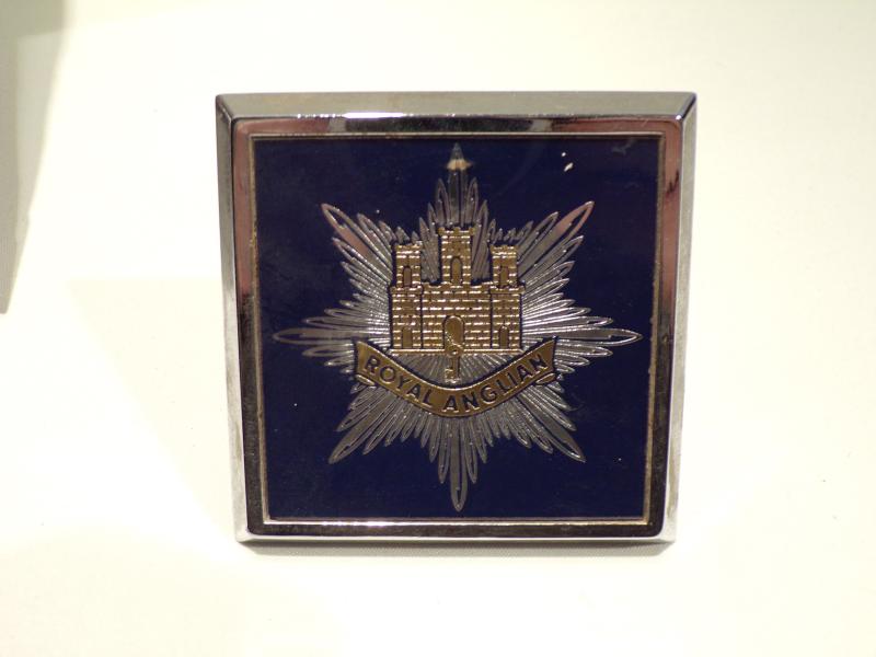 A vintage Royal Anglian Regiment car badge with fittings, together with a sad memorial to Lance Corporal George Davey, who was killed in action in Afghanistan 20th may 2007. Lot 33