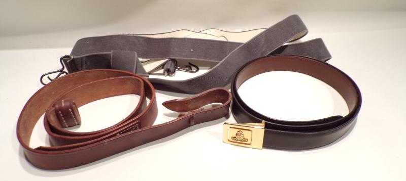 A good lot of mixed militaria including a S6 respirator, water bottles, Royal Artillery belt (fit up to 40”), repro leather rifle sling, German braces and a fit all rifle bipod. Lot 36