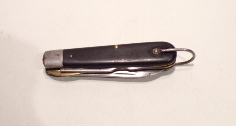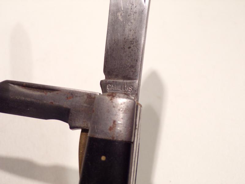 A Camillus double blade folding pocketknife with black Bakelite scales. In good order with signs of age and use. 6.5 inches open, 3.75 inches closed.