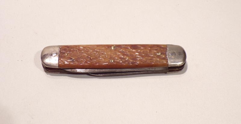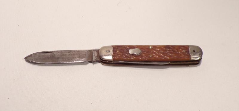 Vintage Remmington double blade pocketknife with stag antler scales and Remington mark to larger blade. In good well used condition. It looks like some of the rivets have been replaced and one bottom rivet missing but a good old knife, measuring 7.25 inches open, 4 inches closed.