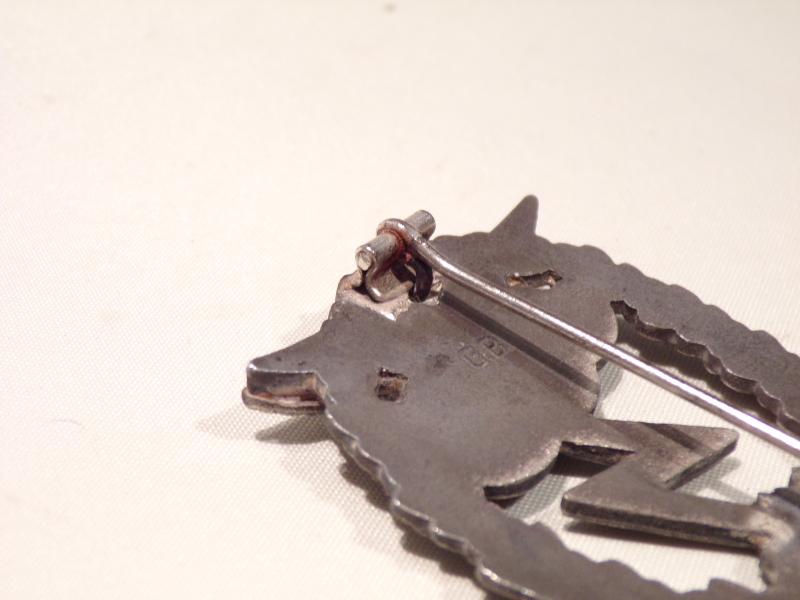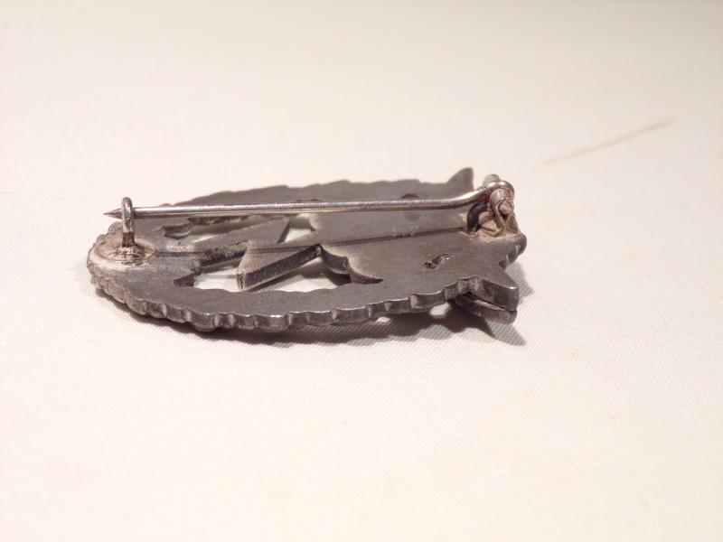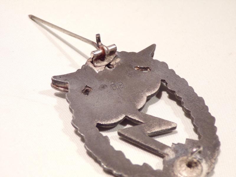 A good mid to late war badge awarded to Luftwaffe personnel for achievement in ground combat. This one is by the maker Gustav Brehmer of Markneukirchen, Saxony, marked GB on reverse.