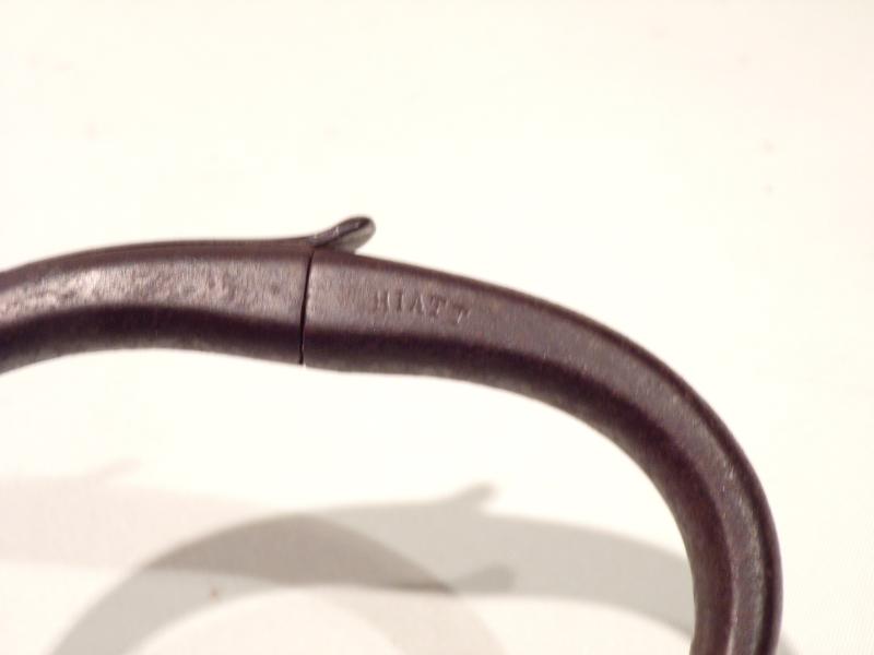 Dating from the late Victorian/Edwardian era these handcuffs were made by Hiatt & Co a well know manufacturer of prison restraints, they are known as ‘come along’ or ‘nipper’ cuffs and are a snap or snatch type utilizing a spring clip locking mechanism rather than a traditional key, made from wrought steel they measure approx. 5.25 long and come in very good condition.