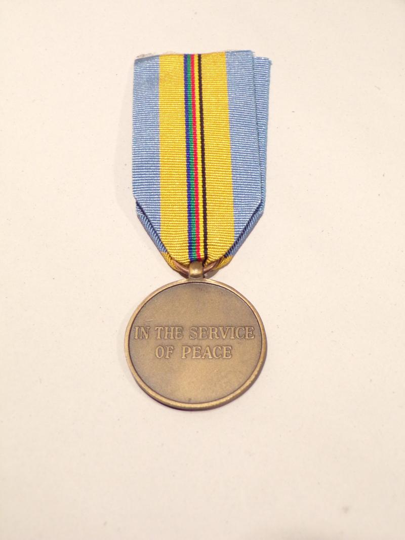 United Nations in the service of piece medal with UNTAG ribbon, United Nations Transitional Assistance Group, Namibia 1989-90. Current issue in unused condition.