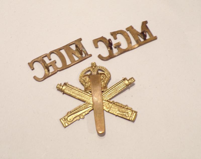 A good set of machine gun corps OR’s cap and shoulder badges, all in good used condition.