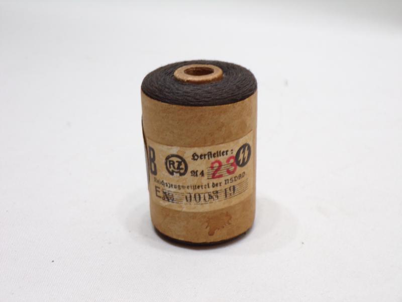 Original WW2 spool of repair cotton / rayon for the SS uniform. Unused and still in its original paper wrap with RZM label. It measures 2 inches high.