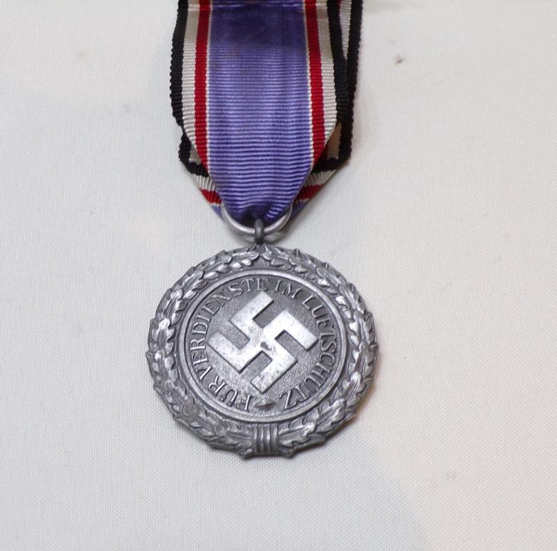 WW2 era service medal awarded to members of the German Luftschutz for four year’s service. known as the Air Warden Honour Award 2nd Class, it could also be awarded for bravery, but mostly for service to Fire Fighters, Police, Factory Guards / Fire Watchers, Anti-Aircraft Defence personnel etc. Members of the Luftschutz, for the most part were highly trained in air surveillance, radar in order to issue early warnings, black out duty, against gas attacks and also the use and maintance of anti aircraft weapons.