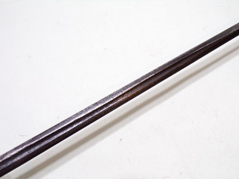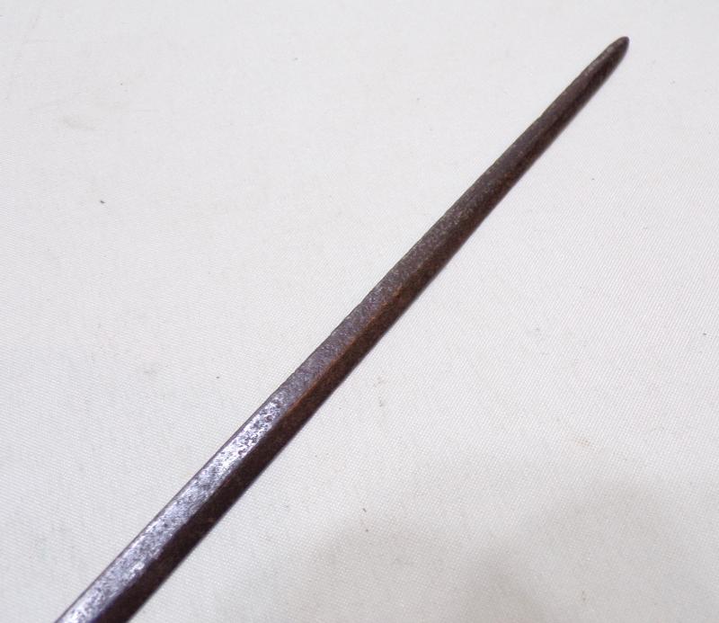 This sword is in good order but missing its scabbard, which most are of this period, the blade is mostly good with some pitting to the metal towards the tip. it measures 37.25 inches long.
