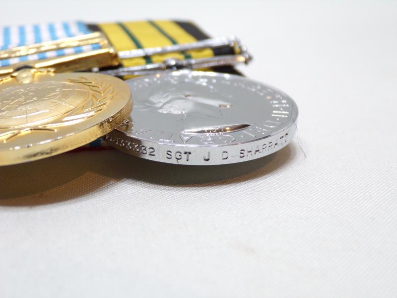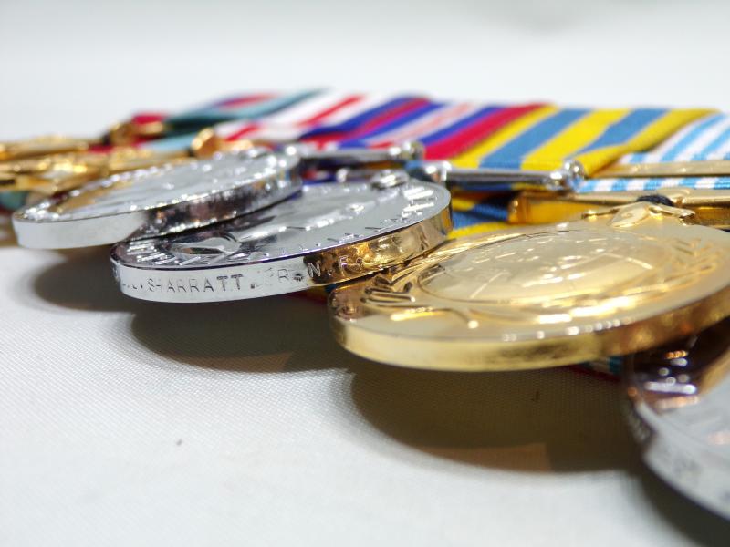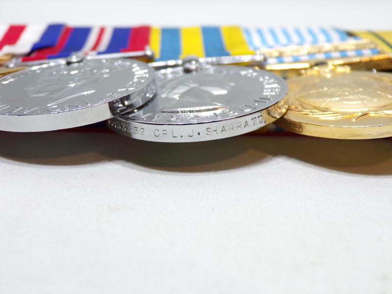Please note. Sergeant Sharratt had his medals stolen; this set is a set of MOD official named replacements mounted for wear.