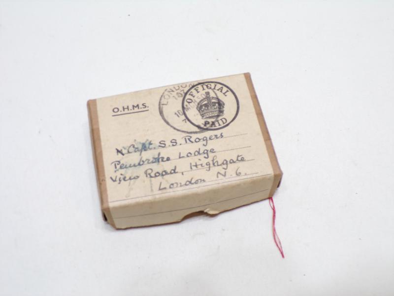WW2 1939/45 star, Burma star, Defence and 1939/45 war medal in named and addressed box of issue with medal issue slip. Addressed to Capt S S Rogers