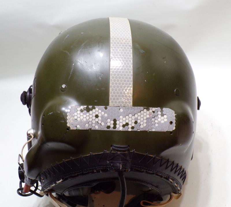 A super example of the late cold war Mk C3 flight helmet introduced in the 1970’s, fitted with NATO-pattern headsets and wiring, with integral microphone. This helmet also includes both its original clear and anti-glare visors and cover. It is in excellent condition with signs of light use and wear. Size medium.