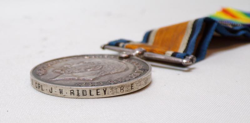 A very interesting WW1 British war and victory medal and the George V Military Medal for Bravery in the Field correctly named to 148387 Sapper / A Corporal James William Ridley of the A.N. Cable Section Royal Engineers.