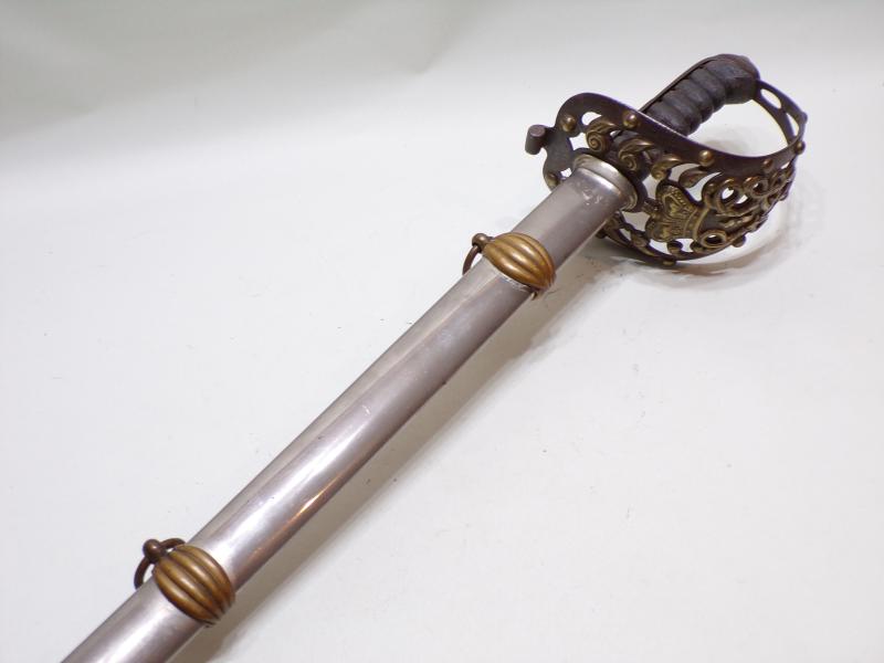 It has its original plated scabbard with gilt brass embellishments; this is also in excellent condition with just light scratching and signs of age and wear here and there. A beautiful example of this type of sword original and used. It measures 43 inches long.