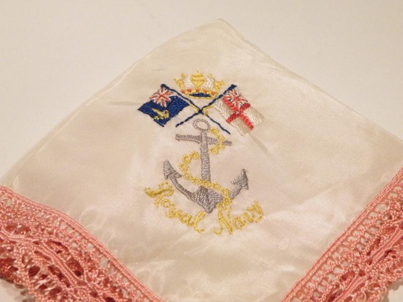 Vintage Royal Navy Embroidered Silk Sweetheart Handkerchief