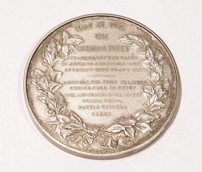 The large size Sterling Silver medallion by Spink & Son commemorating the Battle of Jutland, 1916. Designed by the Marquis of Milford Haven and sold for the benefit of Naval Orphanages. This medal was struck immediately after the battle had been fought in 1916 and at the time received no official title. This one is in very good original condition with one light edge knock, it measures 1.75 inches in diameter