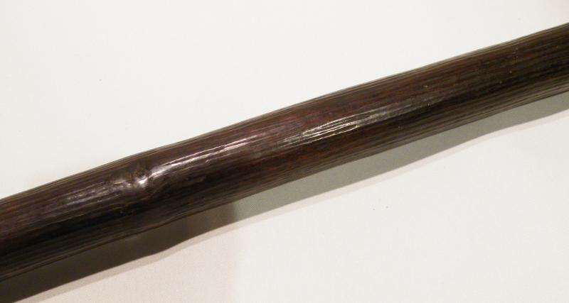 A 19th century traditional Australian Aboriginal hardwood Nulla Nulla club or hunting stick. Made from a dense hard wood with a diamond shaped head, long shaft, the base carved with a criss-cross pattern for grip. In very good used condition with a chip off the very top. It measures 26 inches long.