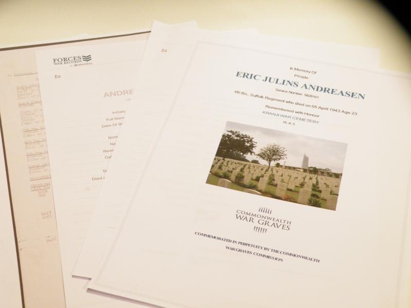 WW2 Group 3 to Andreasen Suffolk Reg Died Japanese POW.