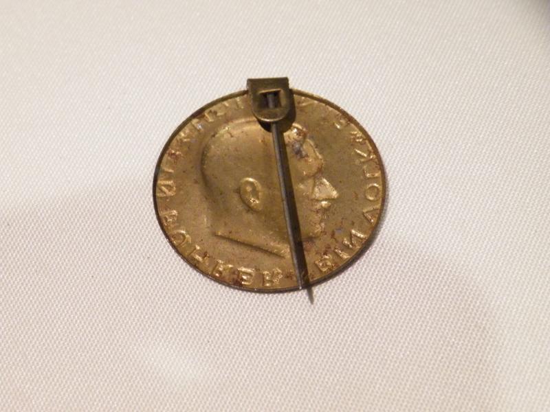 Issued in 1938 to help with the German Winter Help Fund charity. This one with a profile of Hitlers head in thin gilded metal. 1 inch in diameter.