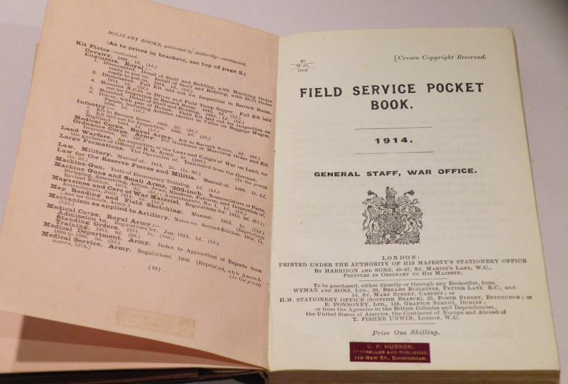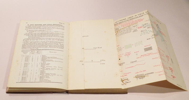 A very good condition copy of the WW1 era 1914 dated officers pocket book which includes pull out diagrams and 290 pages of text with pictures, some mild signs of age and use to outer private purchase cover.