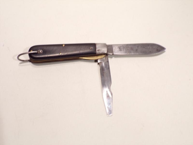 A Camillus double blade folding pocketknife with black Bakelite scales. In good order with signs of age and use. 6.5 inches open, 3.75 inches closed.