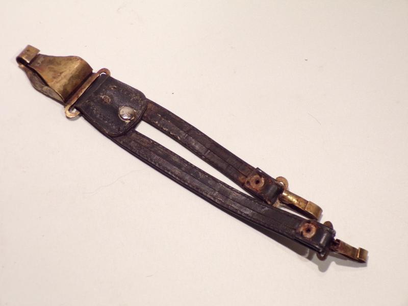 This is an old REPRODUCTION Fascist Italian dagger hanger and not a bad copy, probably produced in the 1970’s it is nice and aged up and toned down. I do not usually sell reproduction items but considering how hard it is to find and the price of hanger for this type of dagger, this one is a good stop-gap with all brass fittings and white metal eagle, measuring 9.5 inches long.