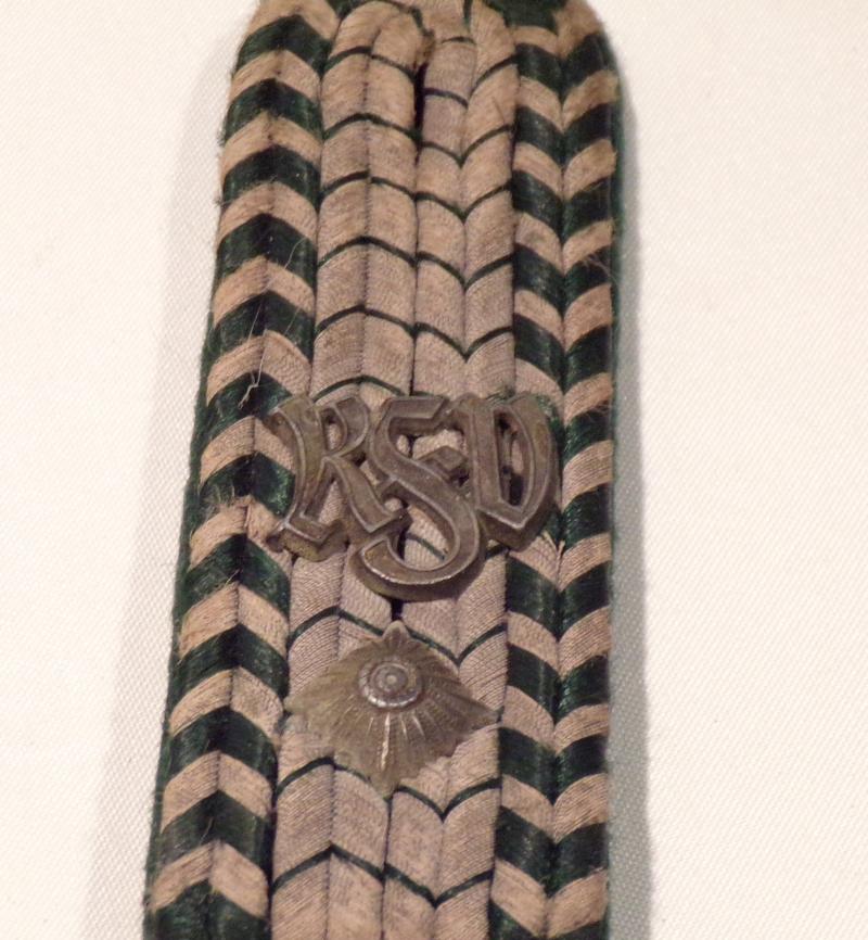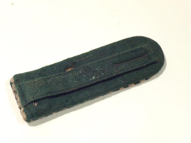 WW2 era German green silk and silver wire shoulder board worn by a Lieutenant customs officer. On green wool backing with tab. In good used condition.