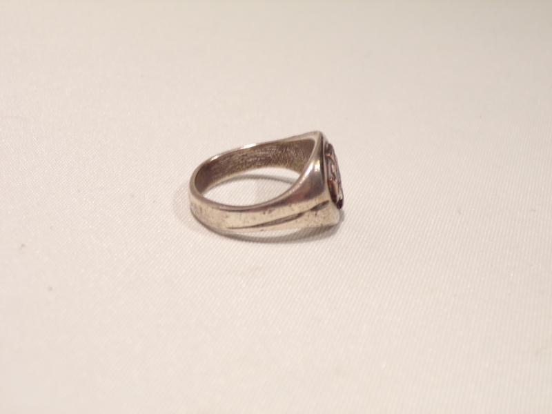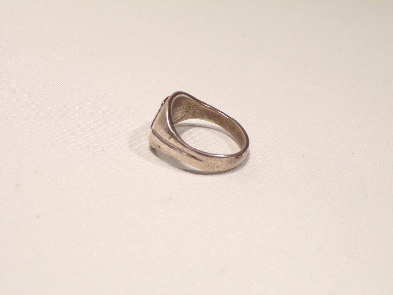 A gent’s white metal Pinky ring displaying the Party’s Faithfull service medal. It is unmarked and untested and comes in good condition with signs of wear but a good period piece. Inside diameter approximately .75 inches.