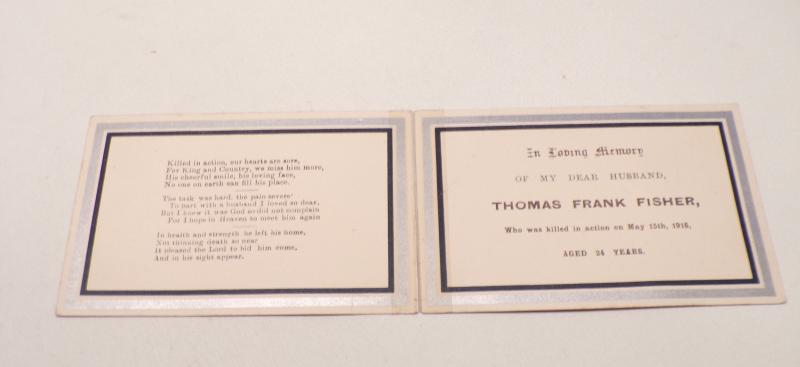 Mystery WW1 Era Memorial Death Card – Thomas Frank Fisher