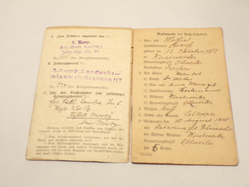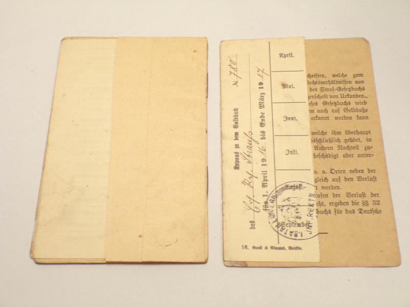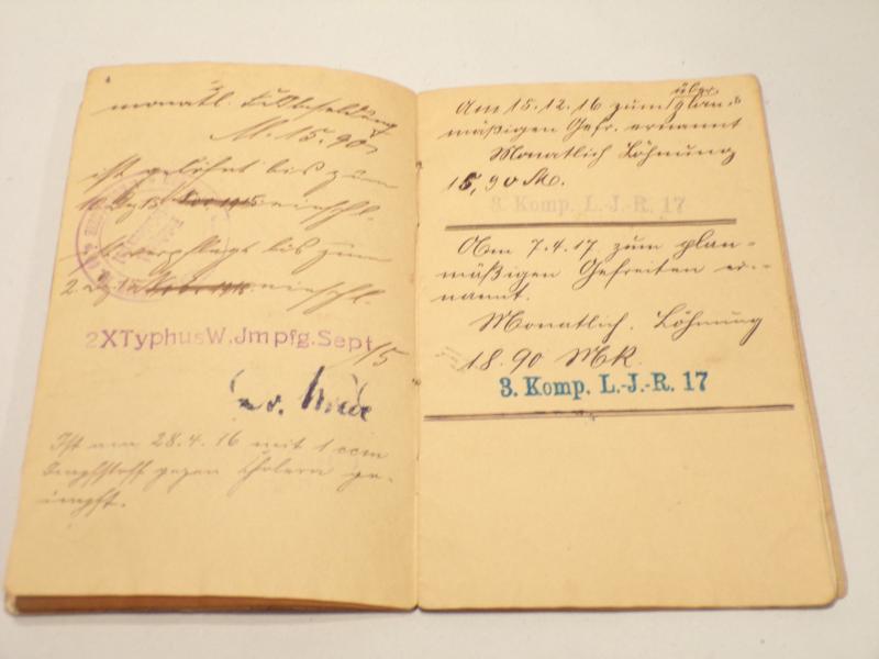 WW1 German Soldiers Paybook 17th Infantry Regiment.