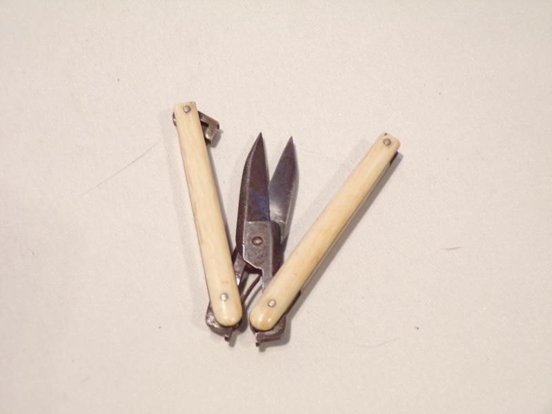 A pair of late Victorian folding scissors, a lovely little piece of engineering. In good working condition, measuring 4 inches when open.