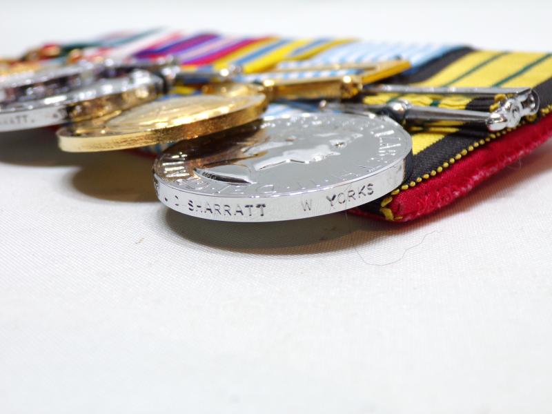 Please note. Sergeant Sharratt had his medals stolen; this set is a set of MOD official named replacements mounted for wear.